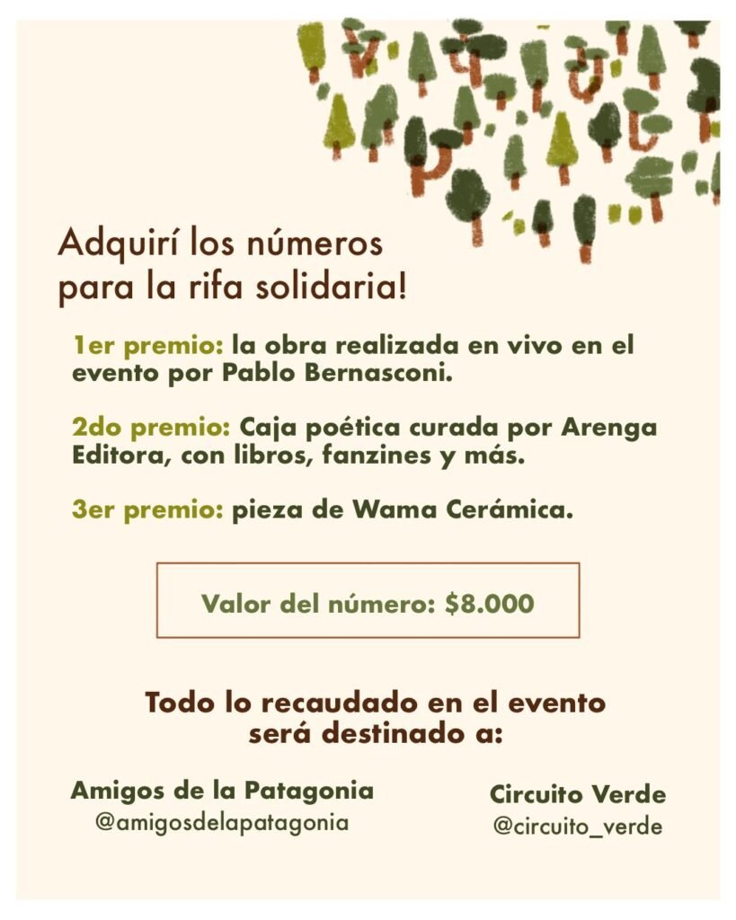 El encuentro contará con lecturas de poesías de Lola Halfon, Melissa Bendersky, Graciela Cros, Camila Vallendor, Vanesa Gallardo Llancaqueo, Victoria Macayo Seitune y Ariel Navalesi, en tanto Pablo Bernasconi creará una obra en vivo inspirada en los textos. Esa pieza será el primer premio de la rifa solidaria que también incluye una Caja Poética curada por Arenga Editora y una pieza de Wama Cerámica.